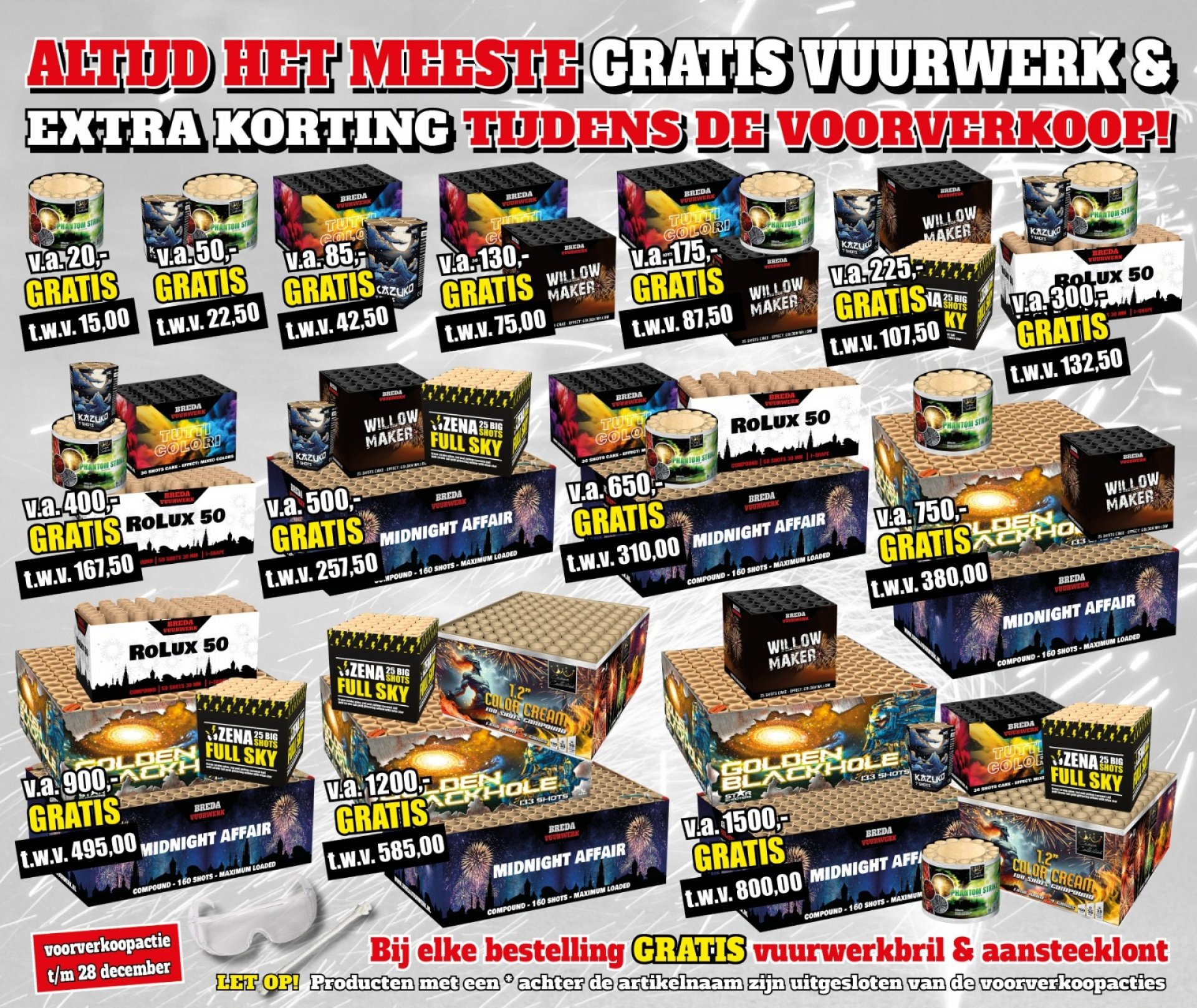 ü Profiteer van het meeste gratis vuurwerk in de voorverkoop en losse verkoop