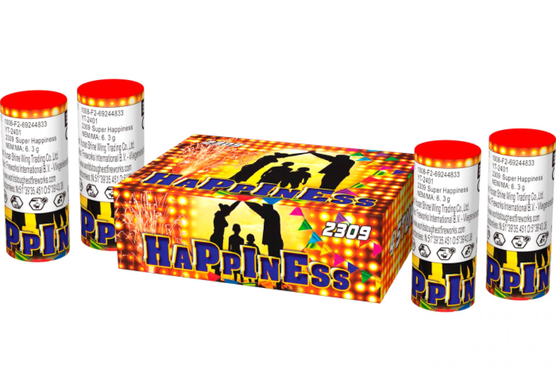 Een vrolijke, knetterende en fluitende fontein met veel kleur. Er zitten 4 fonteinen in een doos die ieder maar liefst 2 meter hoog komen.